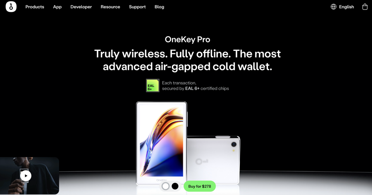 Unique security architecture: The OneKey Pro is equipped with four EAL 6+ certified chips, layering your protection to make unauthorized access virtually impossible, along with air-gapped signing where you can use the built-in HD camera to scan a QR code for transaction signing, keeping the wallet completely offline.