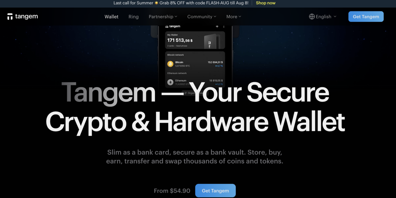 NFC technology: Tangem uses Near Field Communication (NFC) technology, which lets you interact seamlessly with your wallet by simply tapping the card or the ring against an NFC-enabled mobile device, while many other wallets require USB or WiFi connections before you can authorize simple transactions.