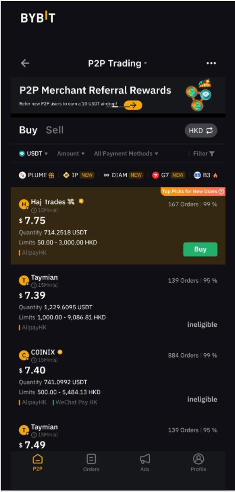 Bybit P2P: ByBit’s P2P is fast-growing with a clean interface and tight integration with their spot and derivatives platforms. While it's still building reputation and liquidity compared to giants like Binance, it's a solid option for emerging market traders.
