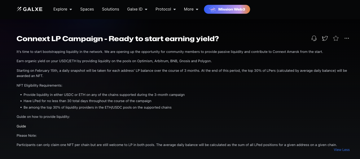 Most Connext users received rewards for their use of the protocol, namely swaps, bridges and liquidity. The Connext team ran a special campaign to provide liquidity where the top 30% of holders received an additional NFT reward.