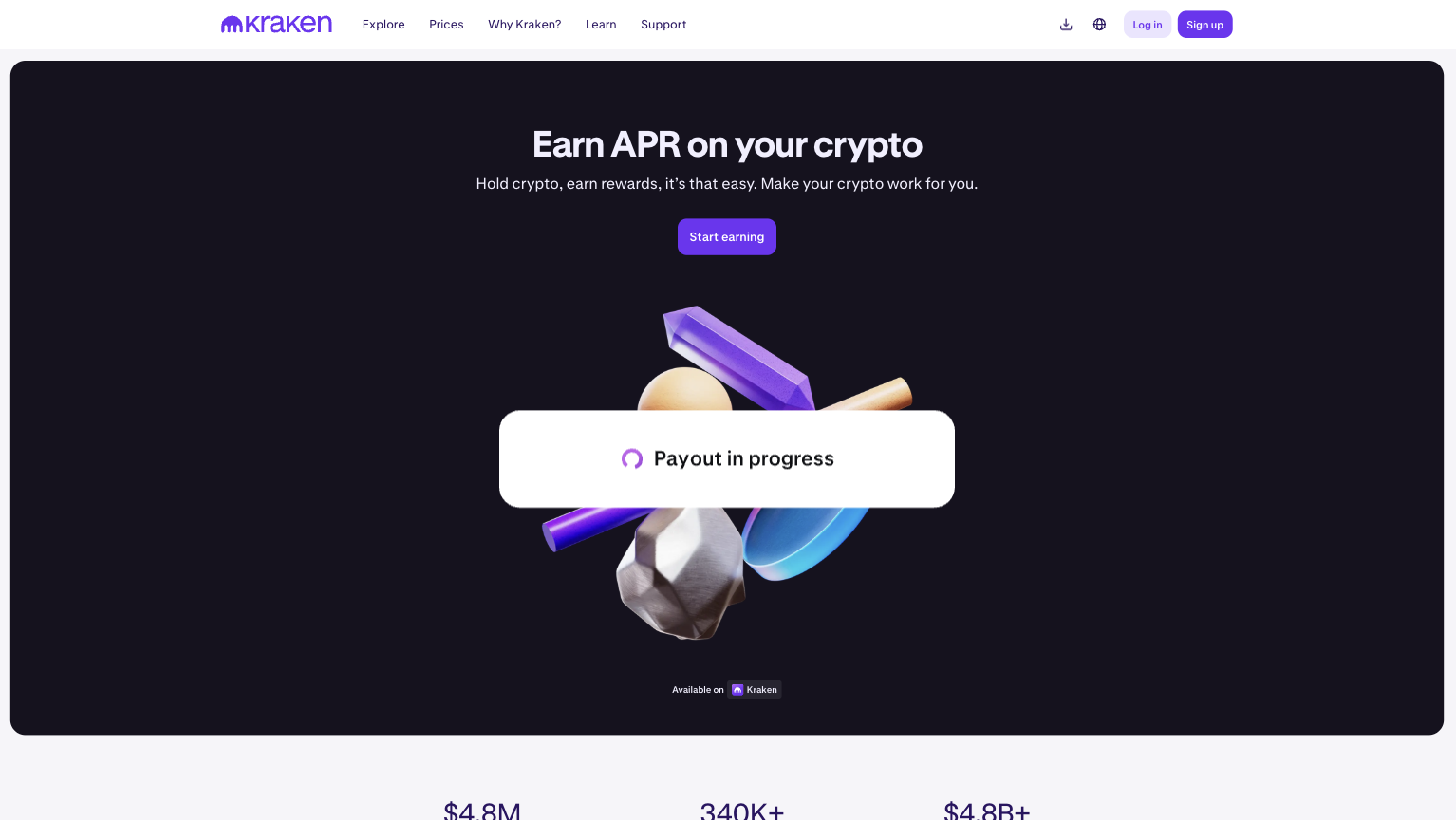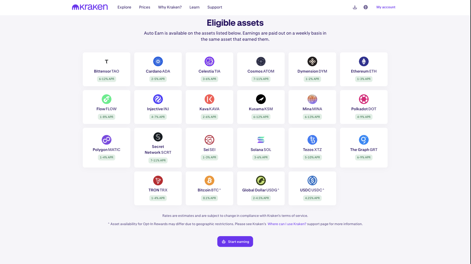 Check out the Kraken page and learn what assets you can use on Kraken to earn a potential APY (%)