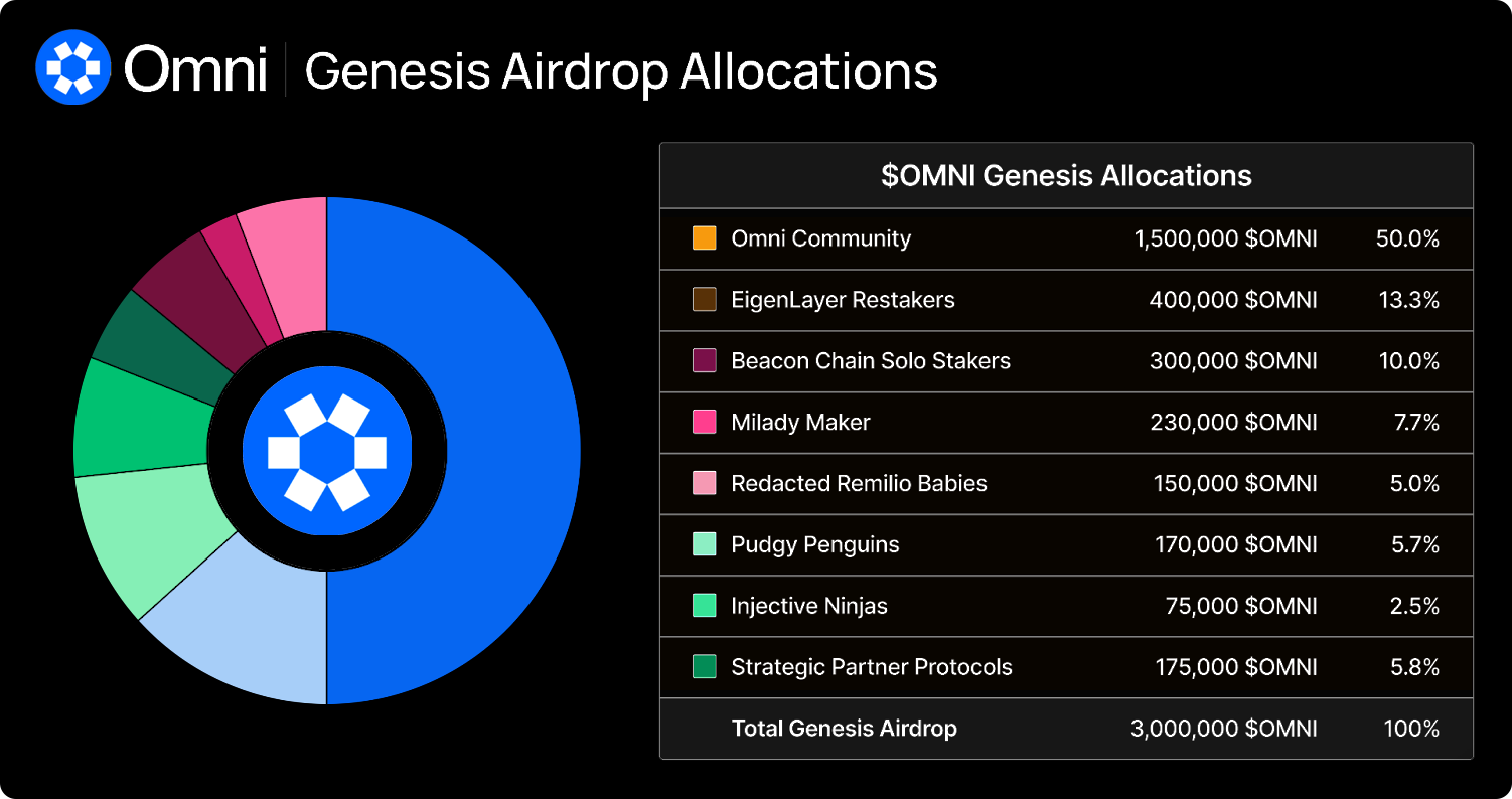 - Strategic Partner Protocols: 175,000 $OMNI (5.8%) was granted to 25 strategic partner protocols to promote growth and innovation.
