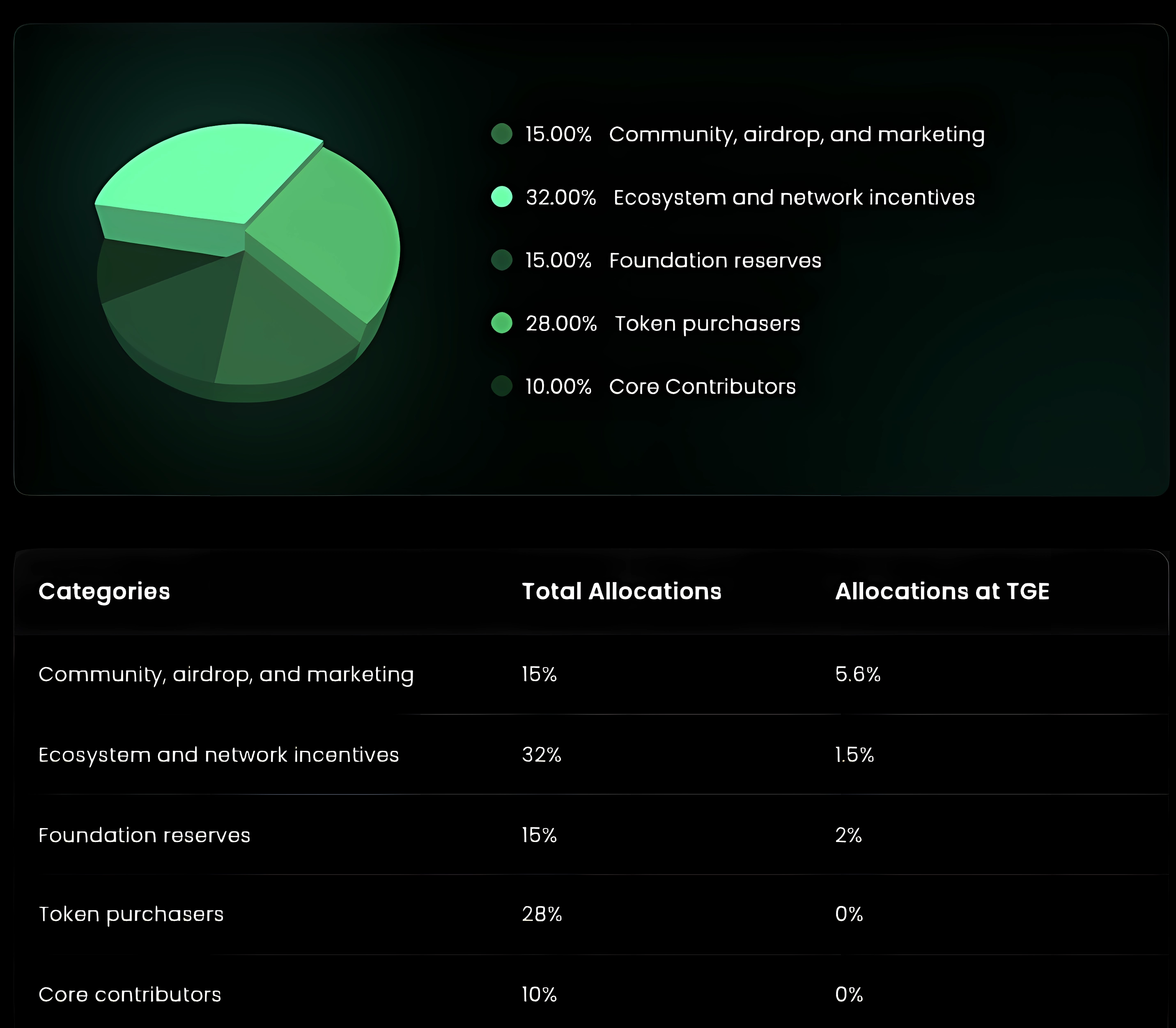 The team has allocated 15% to airdrop, marketing and community.