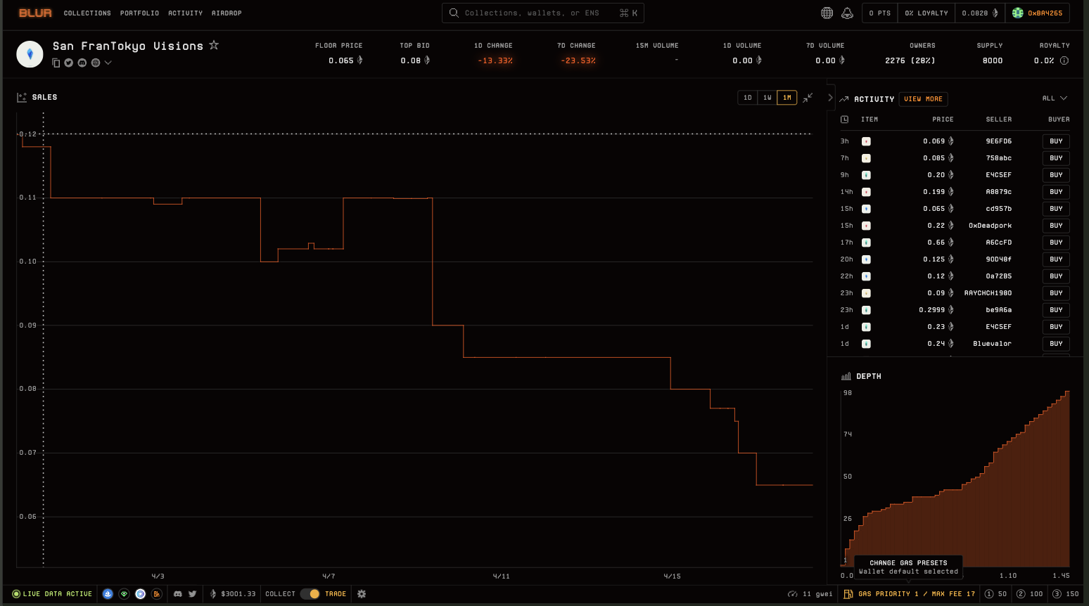 Discount Round price: 0.08 ETH, Public Round: 0.12 ETH. The team also left 400 NFTs as treasury and 2,000 NFTs as airdrop. The total supply was 8,000. The price at Magic Eden Marketplace fluctuated immediately after minting within the public mint price and remained so for a long time.This means that users who received NFTs as an airdrop had the opportunity to earn 0.12 ETH. Users who received mint with discount for 0.008 ETH came out with little profits and covered the commission.