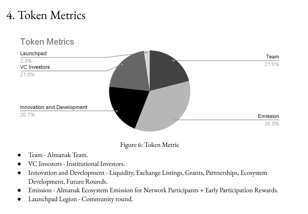 Source: Almanak TokenpaperThe Almanak Token is a multi-functional asset within the platform: