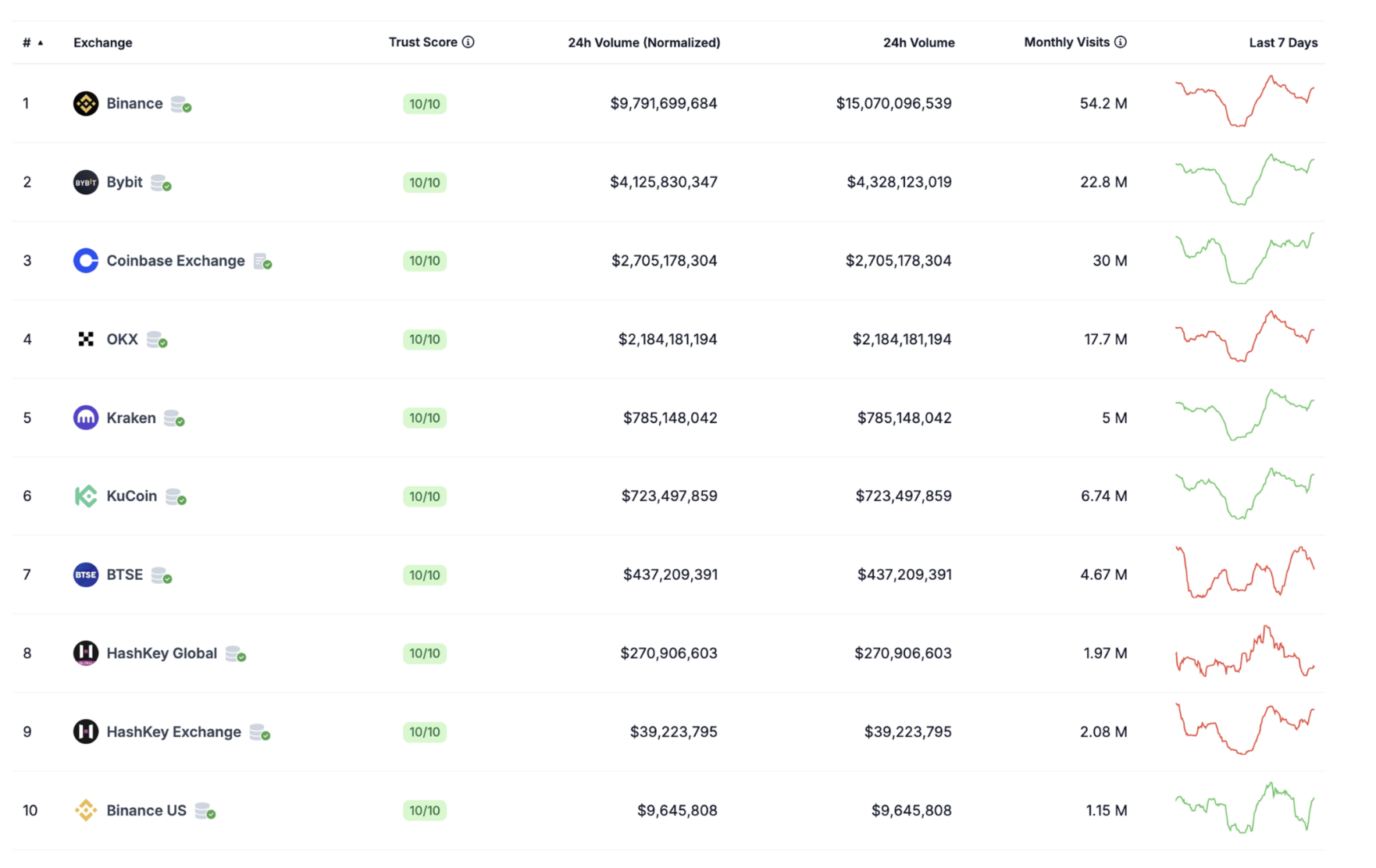 As of May 2025, Kraken receives about 6.6 million monthly visits according to SimilarWeb. This puts it in 24th place on CoinGecko's exchange list. This engagement level is respectable but far behind Binance's 60+ million monthly visits.
