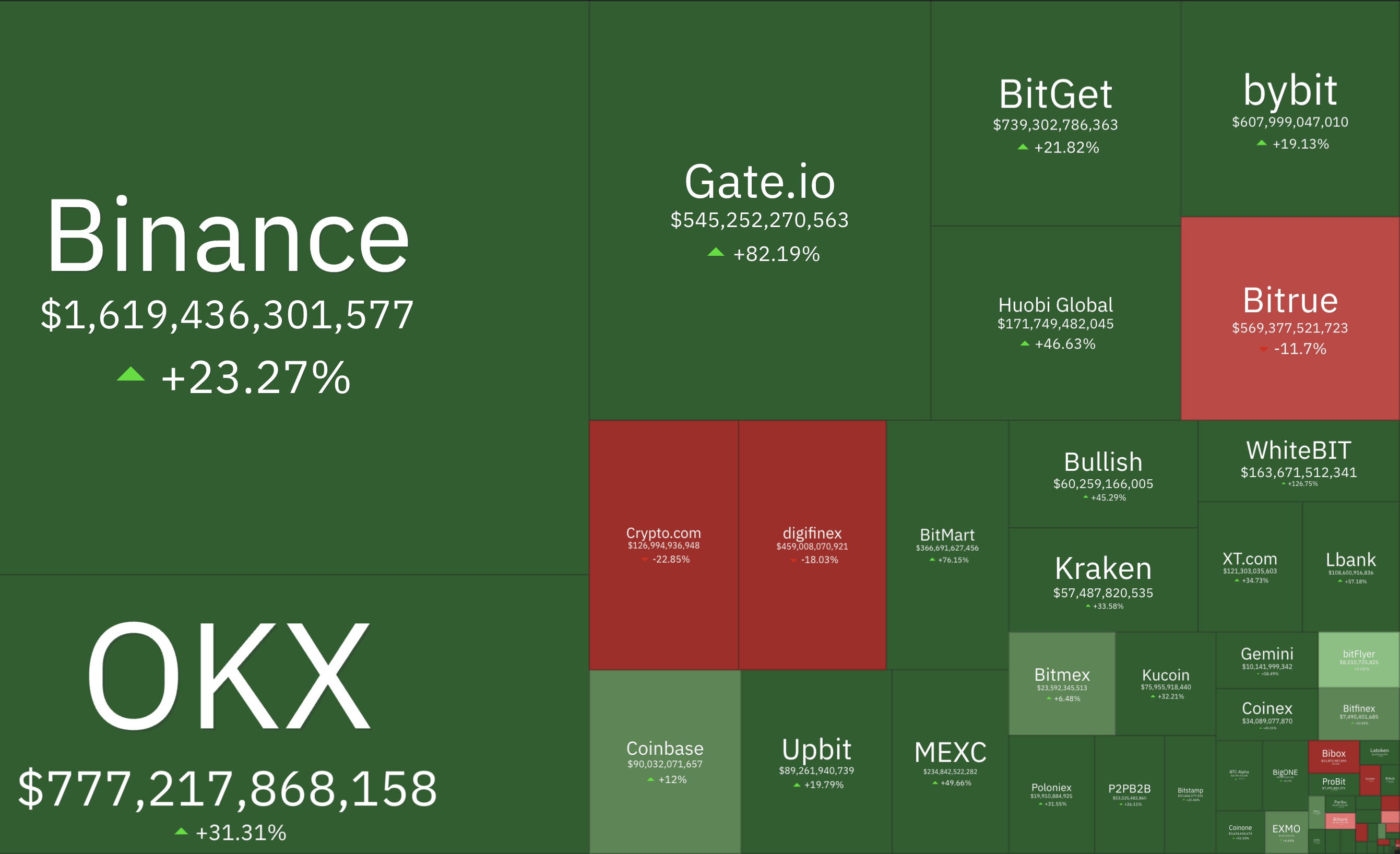 Binance clearly dominates all metrics. Its broad appeal and market leadership overshadow Kraken's performance. Other exchanges like Bybit, OKX, and Coinbase also perform better than Kraken in trading activity and user traffic. Kraken trades $380 billion yearly (May 2025 data). This falls behind Binance at $3,850 billion and Coinbase at $740 billion. This gap creates weaker liquidity and market depth for traders.Source: Coin360 (data from May 9th, 2025)