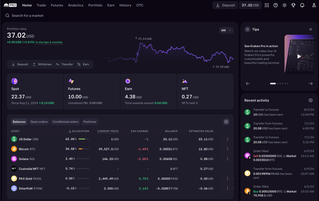 Kraken Desktop: This is a downloadable application that gives professional traders low-latency performance with customizable views and multi-monitor support.